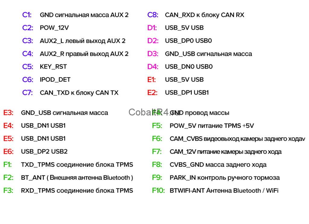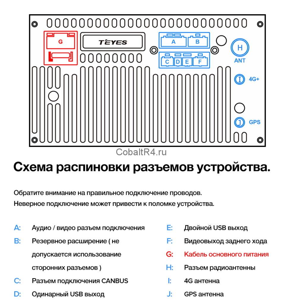 Распиновка всех разъемов магнитол Тиайс (Teyes) SPro и CC2, любезно предоставленная производителем. Не забывайте, что любые действия связанные с проводкой автомобиля крайне желательно выполнять как минимум на выключенном зажигании/аксессуарах. В идеале со снятой клеммой с АКБ, но тут стоит учитывать возможность сброса настроек автомобиля.